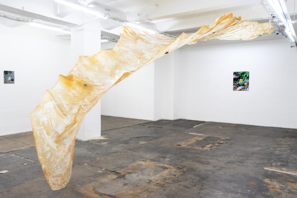 Growling finds its origins in research into the communication systems of non-human species. The project focuses in particular on animals that possess unique biological characteristics for signal generation such as amphibians, birds, and fish, as well as plants. These entities communicate using a diverse range of signals, including sounds and movements, produced in various circumstances. The sound composition relays signals through a series of transducers, embedded in a latex membrane, thereby creating a collective voice. Composed using both digital and analogue means, the sound patterns represent real forms of communication and imaginary signals.