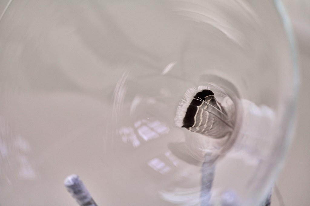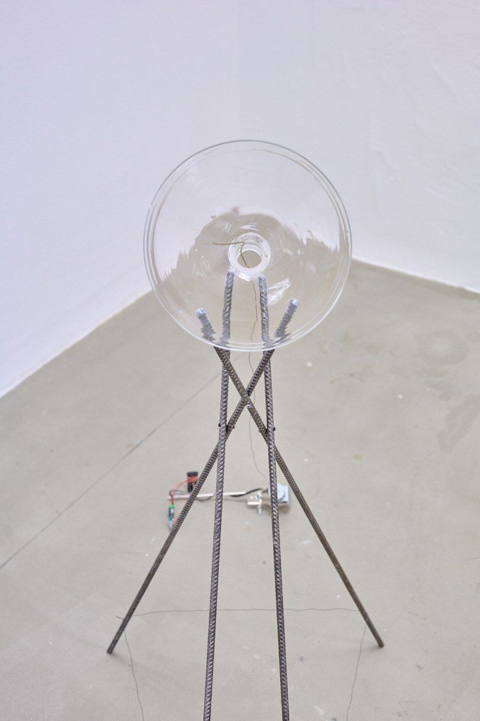 Tickle is composed of tactile sensations in the ear canal. Two glass funnels, crafted by glassmaker at the Museum Galshütte Gernheim, amplify subtle acoustic textures through their unique shapes.